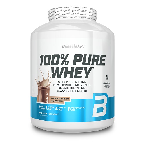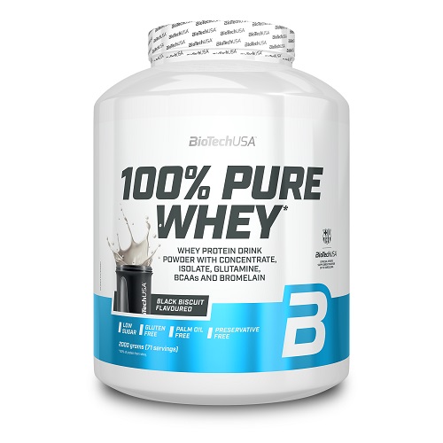 Η ανανεωμένη BIOTECH USA 100% Pure Whey 2000gr διατίθεται χωρίς προσθήκη ζάχαρης (εκτός από τη γεύση μαύρου μπισκότου) και με προσθήκη ενζύμου βρομελίνης. Η βρομελίνη συμβάλλει στη διάσπαση των πρωτεϊνών σε μικρότερα πολυπεπτίδια ή αμινοξέα. Εκτός από τα νέα χαρακτηριστικά του, το προϊόν παραμένει χωρίς γλουτένη και φοινικέλαιο.