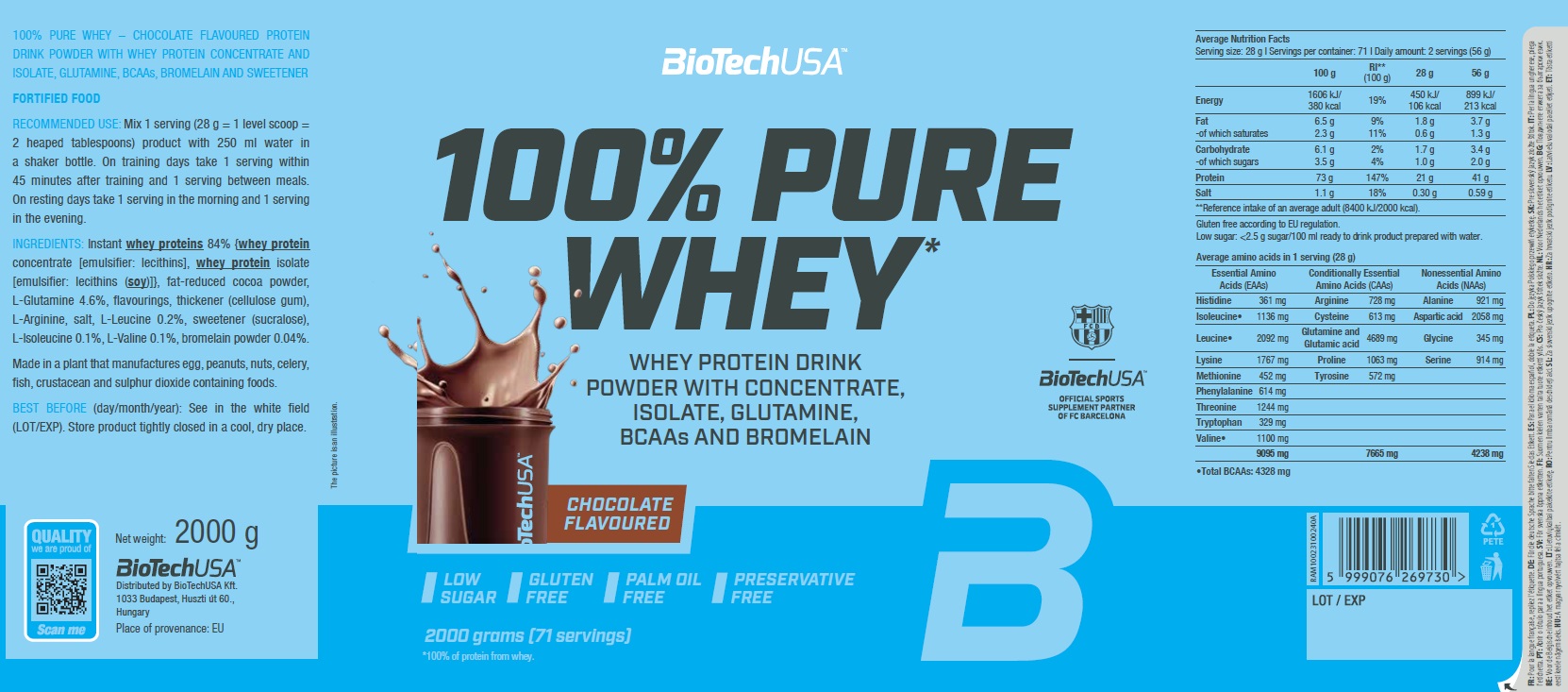 Η BIOTECH USA 100% Pure Whey 2000gr είναι ένα υψηλής περιεκτικότητας μείγμα πρωτεϊνών & υψηλής βιολογικής αξίας με επιπλέον προστιθέμενα αμινοξέα & γλυκαντικά χωρίς γλουτένη.