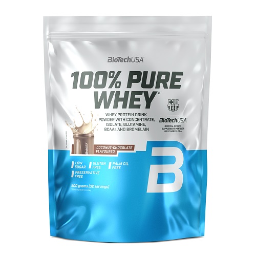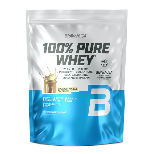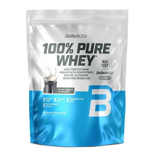 Η ανανεωμένη BIOTECH USA 100% Pure Whey 900gr διατίθεται χωρίς προσθήκη ζάχαρης (εκτός από τη γεύση μαύρου μπισκότου) και με προσθήκη ενζύμου βρομελίνης. Η βρομελίνη συμβάλλει στη διάσπαση των πρωτεϊνών σε μικρότερα πολυπεπτίδια ή αμινοξέα. Εκτός από τα νέα χαρακτηριστικά του, το προϊόν παραμένει χωρίς γλουτένη και φοινικέλαιο.