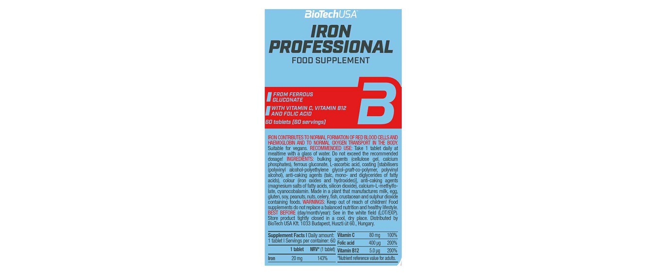 Το BIOTECH USA Iron Professional έχει σχεδιαστεί για να παρέχει πιο ολοκληρωμένη υποστήριξη για μία ποικίλη, ισορροπημένη διατροφή και υγιεινό τρόπο ζωής μέσω των επιδράσεων των ενεργών συστατικών σε παρόμοιες φυσιολογικές λειτουργίες σε σύγκριση με τα συμπληρώματα διατροφής που περιέχουν μόνο σίδηρο.