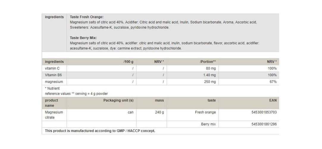 Το PEAK Magnesium Citrate 240gr είναι ένα συμπλήρωμα διατροφής σε σκόνη που περιέχει μαγνήσιο σε εξαιρετικά βιοδιαθέσιμη μορφή κιτρικού άλατος, εμπλουτισμένο με βιταμίνες C και B6. Είναι δημοφιλές σε αθλητές και άτομα που επιθυμούν να μειώσουν την κόπωση και να υποστηρίξουν τη μυϊκή λειτουργία.