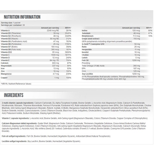 Το Multi Pro Plus της Scitec Nutrition είναι μία υψηλού επιπέδου φόρμουλα πολυβιταμίνης και μετάλλων σε ένα πακέτο διάφορων καψουλών και μίας ταμπλέτας που είναι βασισμένη στην MEGA DAILY PLUS ONE πολυβιταμίνη.